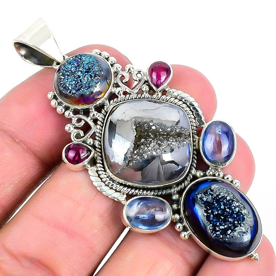 Titanium Druzy Stone Anniversary Mother Friend Gift Pendant Jewelry Solid Silver