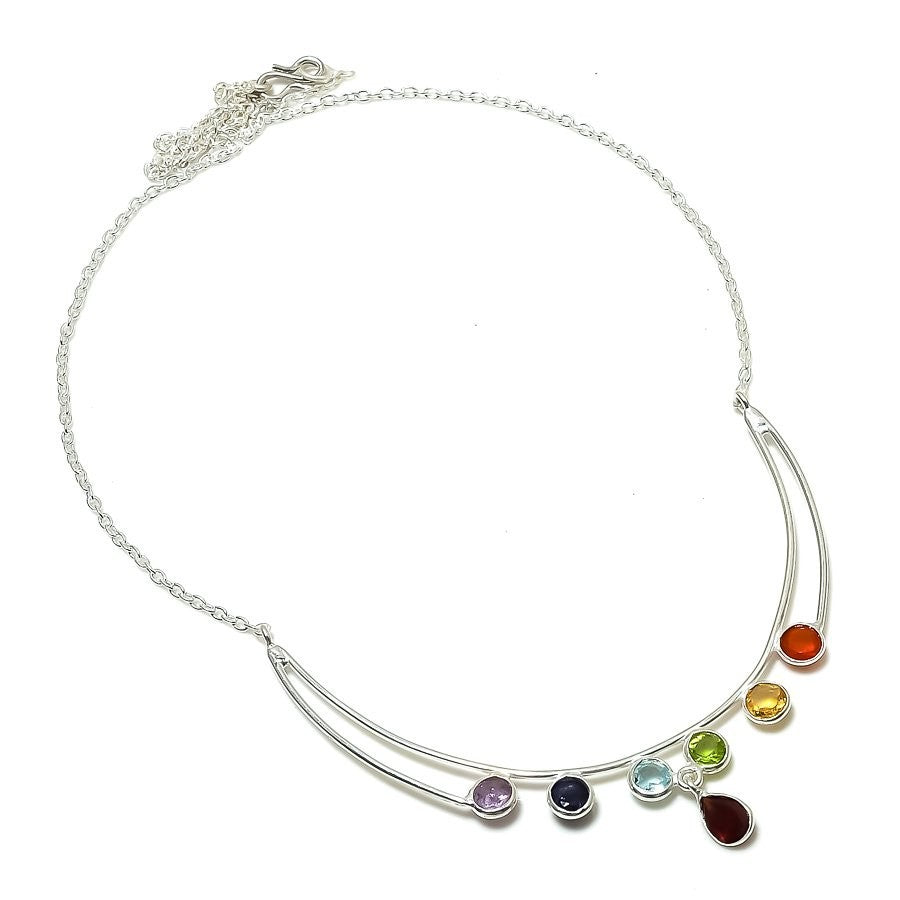 Natural Garnet Seven Chakra Art Deco Chain Bezel New Necklace Jewelry 925 Silver