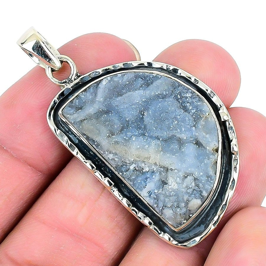 Natural Desert Rose Druzy Daughter Sisters Gift Pendant Jewelry 925Ā SolidĀ Silver