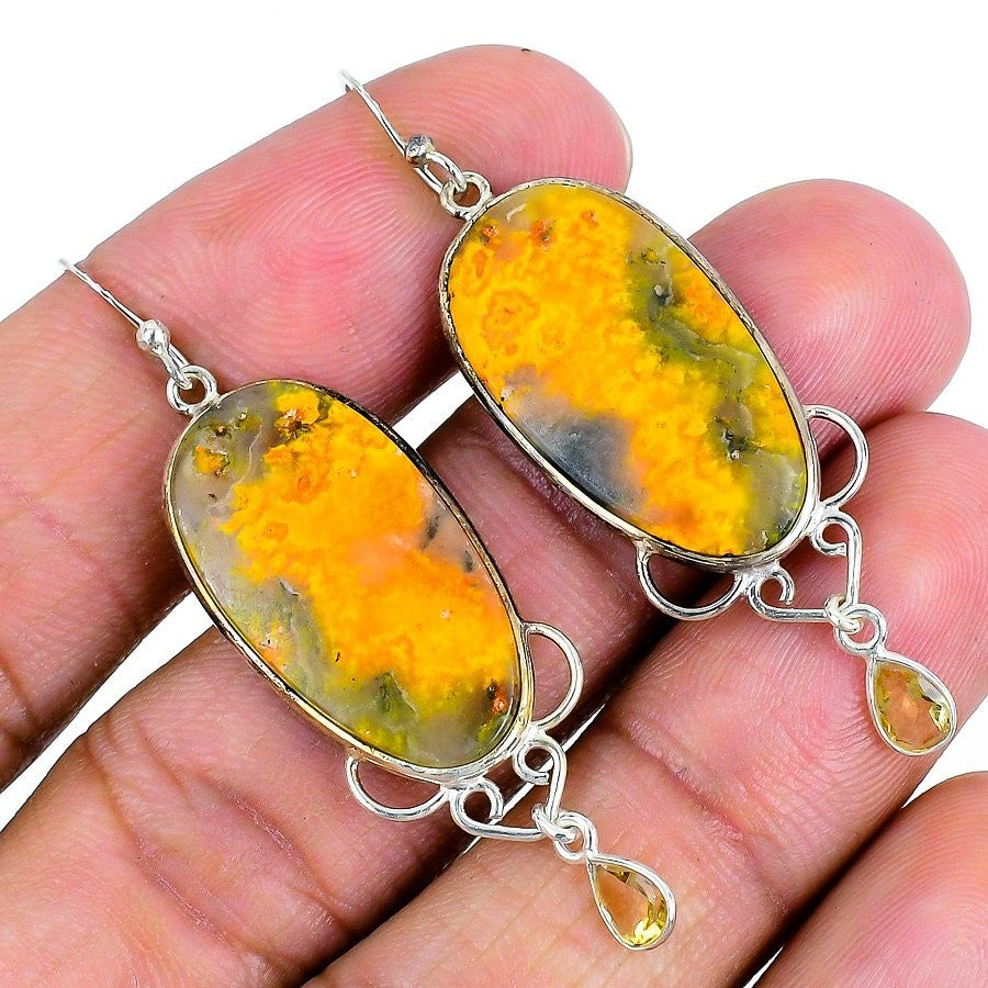 Natural Bumblebee Jasper Wife Dangle Bezel Earrings Jewelry 925 Sterling Silver