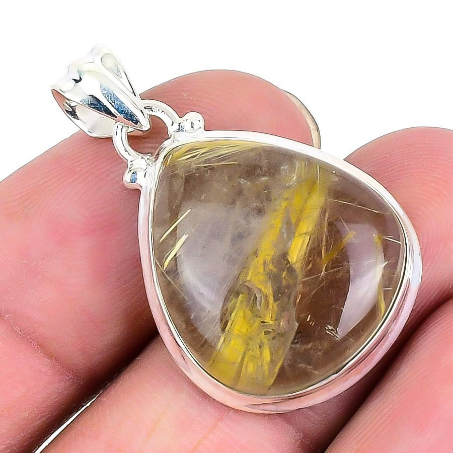 Natural Golden Rutile Elegant Bezel Sister Artisan Birthday Pendant Solid Silver