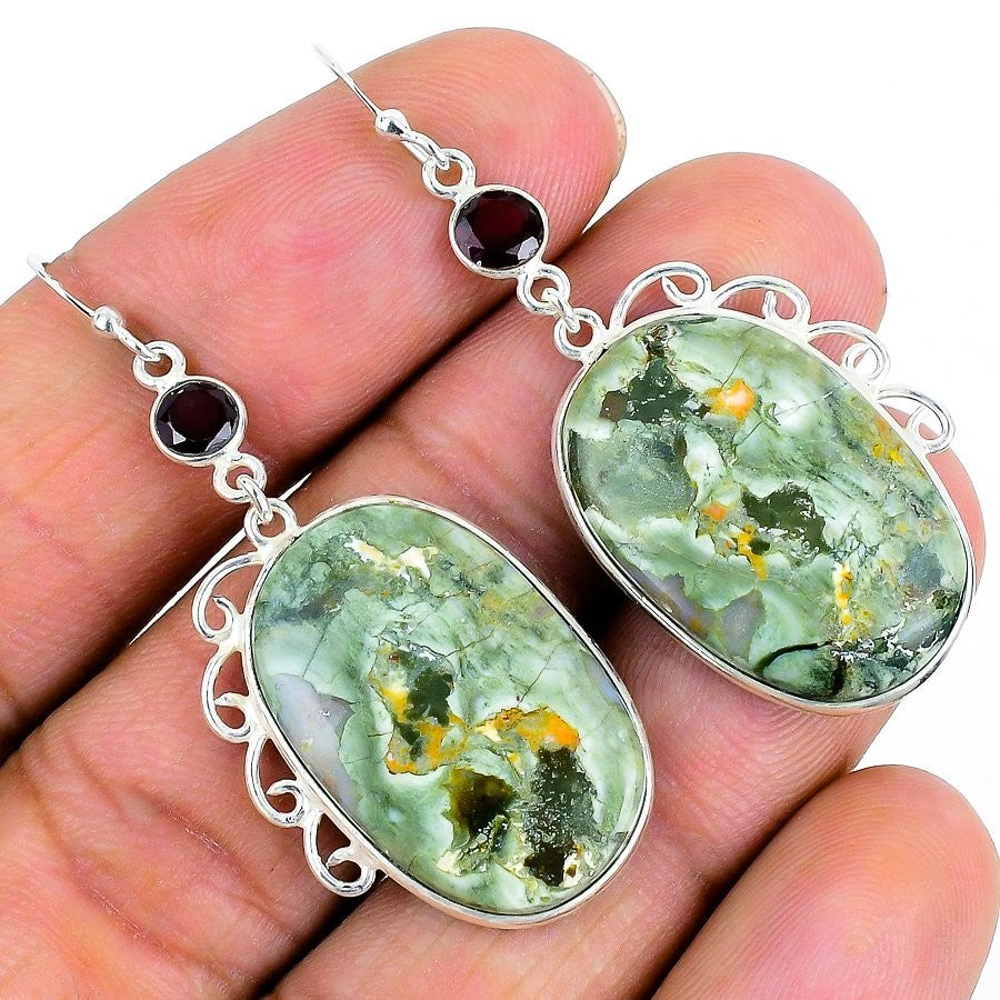 Natural Ocean Jasper 925 Silver Mother Friendship Day Dangling Earrings Jewelry