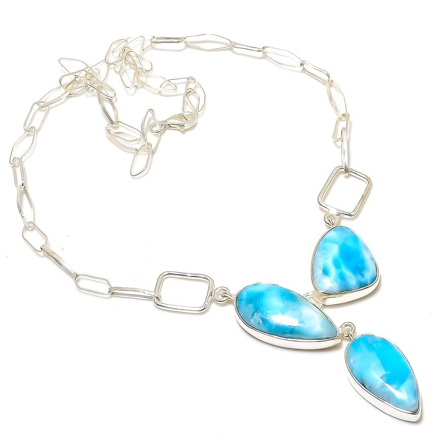 Natural Republic Larimar 925Ā SolidĀ Silver Friendship Day Chain Necklace Jewelry