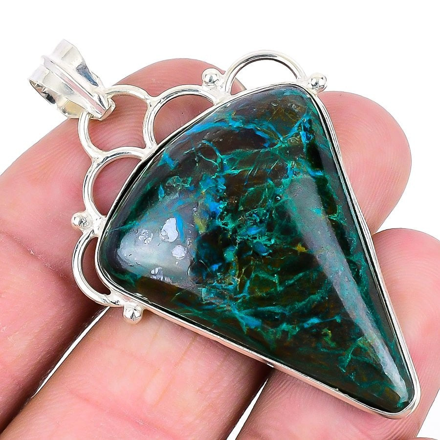 Azurite Malachite Stone Sterling Silver Art Deco Unique Daughter Elegant Pendant