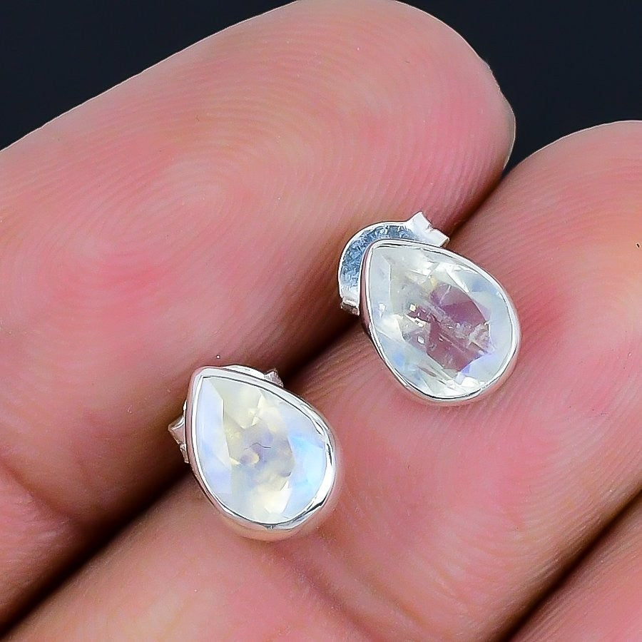 Natural Moonstone Daughter Stud Post Crown Chakra Birthday Earrings Solid Silver
