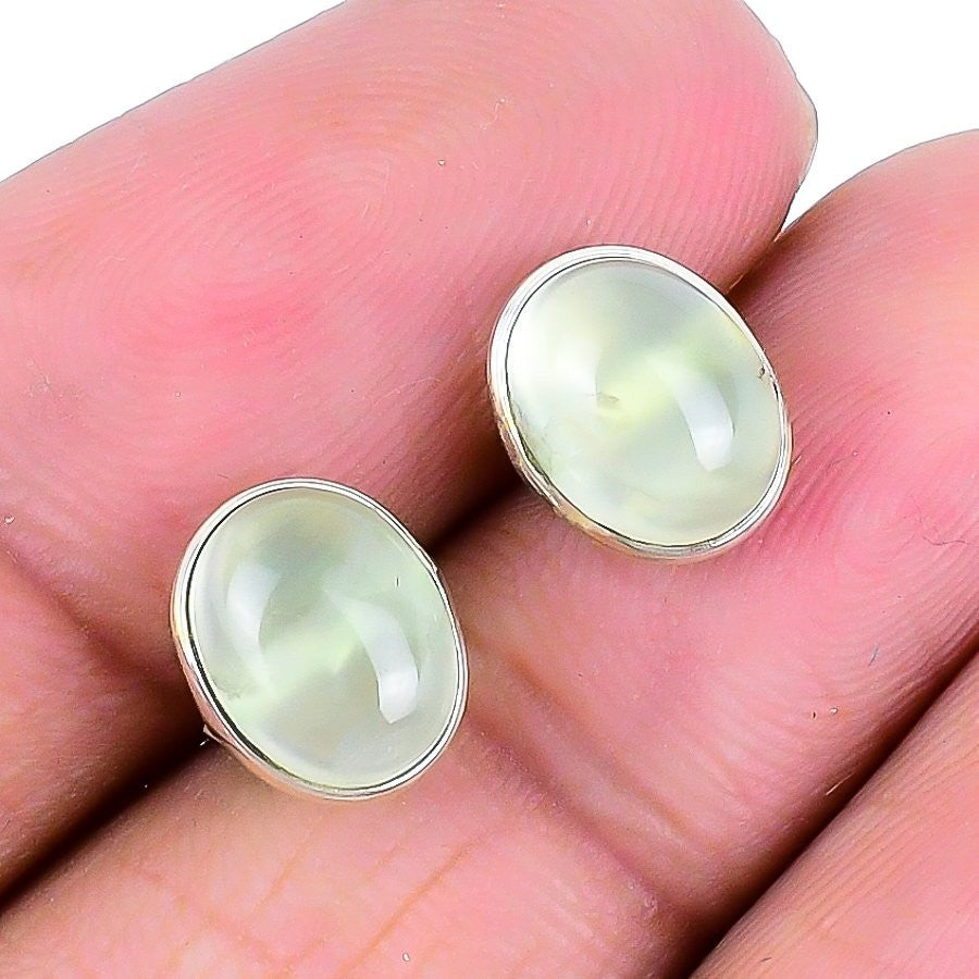 Natural Prehnite Sterling Silver Butterfly Stud Post Handmade Earrings Jewelry
