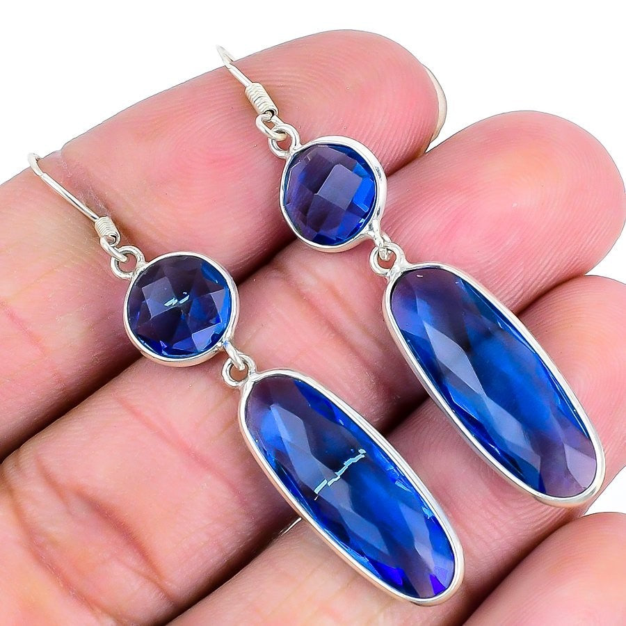Iolite Treated Glass Gemstone 925 Solid Silver Drop Dangle Friend Gift Earrings