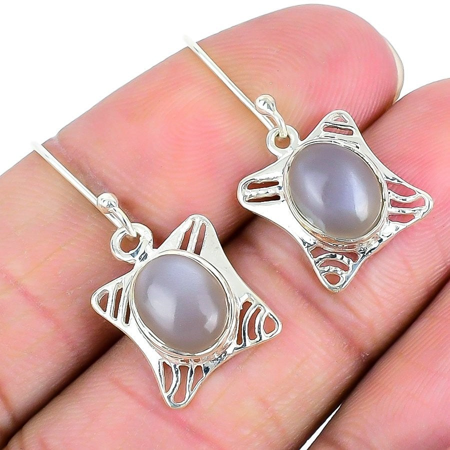 Natural Moonstone Bezel Handcrafted Wife Drop Dangle Hook Earrings 925 Silver