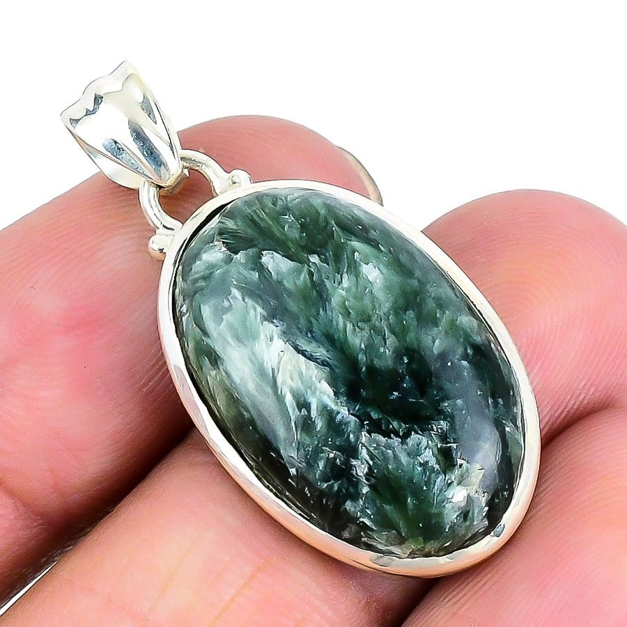 Seraphinite Stone Friendship Day Bezel Anniversary Pendant 925 Sterling Silver