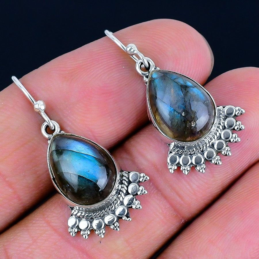 Natural Labradorite Drop Dangle Best Sisters Gift Earrings Jewelry 925 Silver