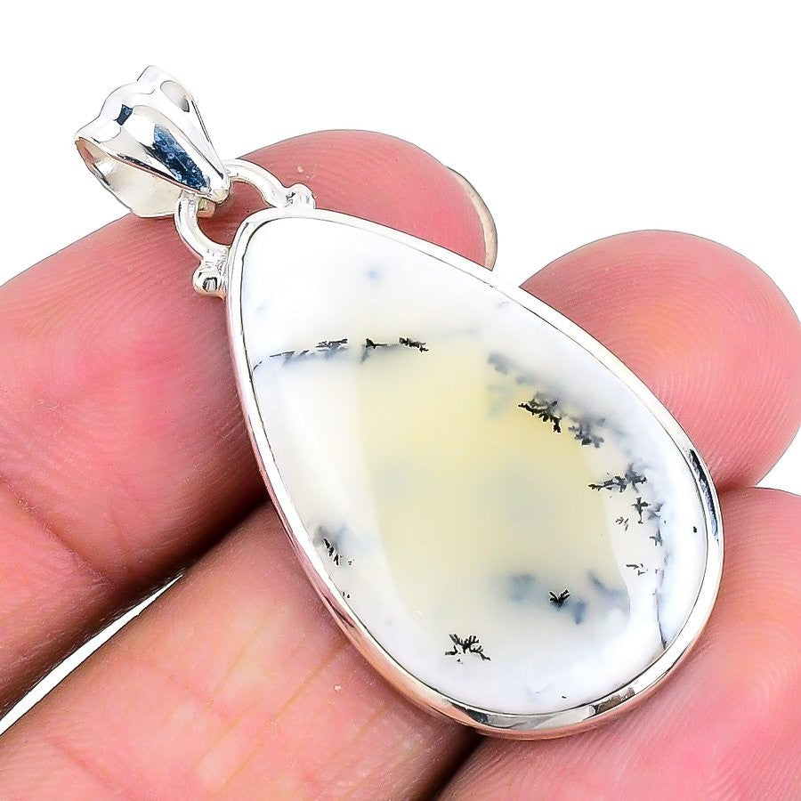 Dendrite Opal Stone Solid Silver Wife Sisters Day Bezel Wedding Pendant Jewelry