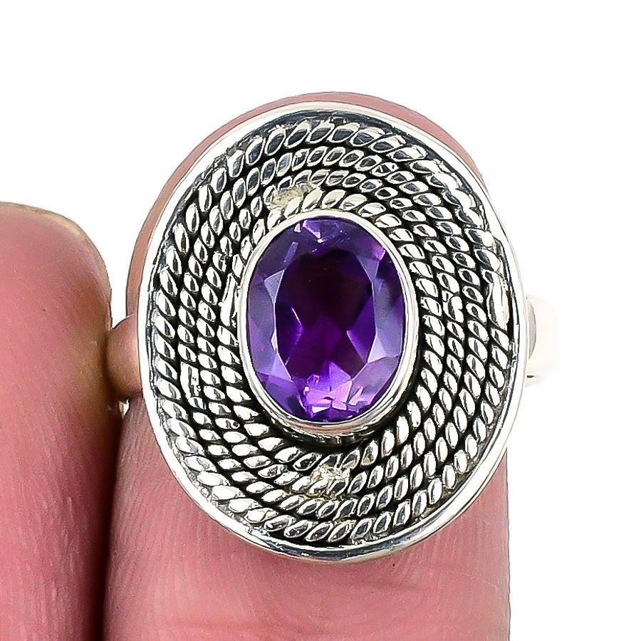 Natural Amethyst Handmade Statement Daughters Day Ring Size 7 Sterling Silver