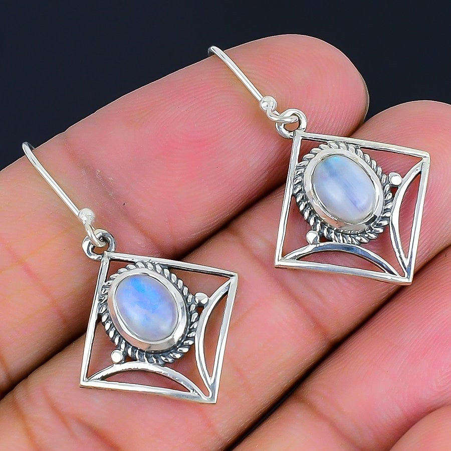 Crown Chakra Moonstone Stone 925 Silver Wedding Dangling Daughter Boho Earrings