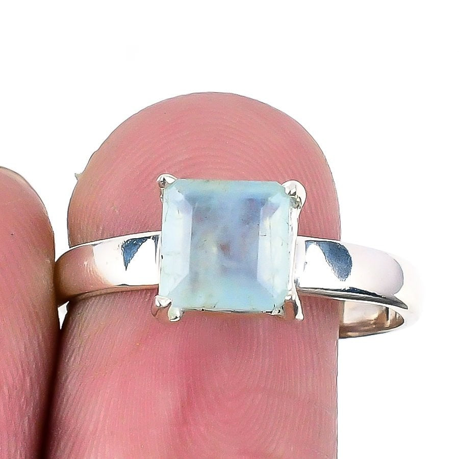 Aquamarine Gemstone 925 Sterling Silver Engagement Statement March Ring Size 10