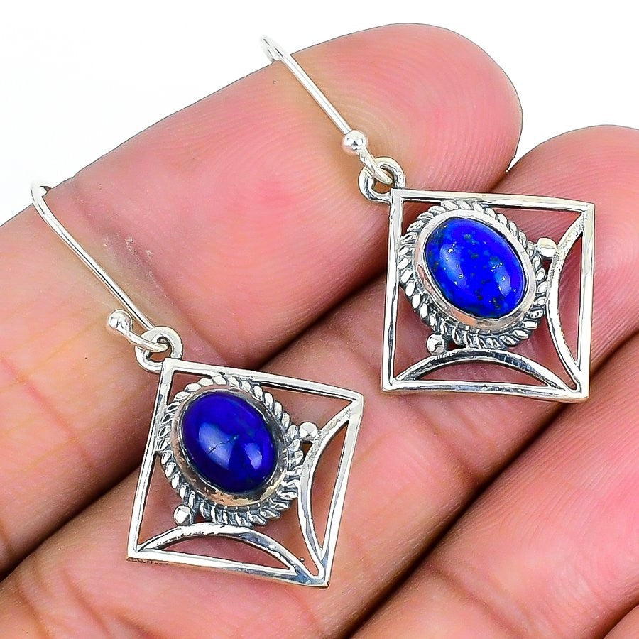 Lapis Lazuli Stone Solid Silver Channel Set Art Deco Drop Dangle Sister Earrings
