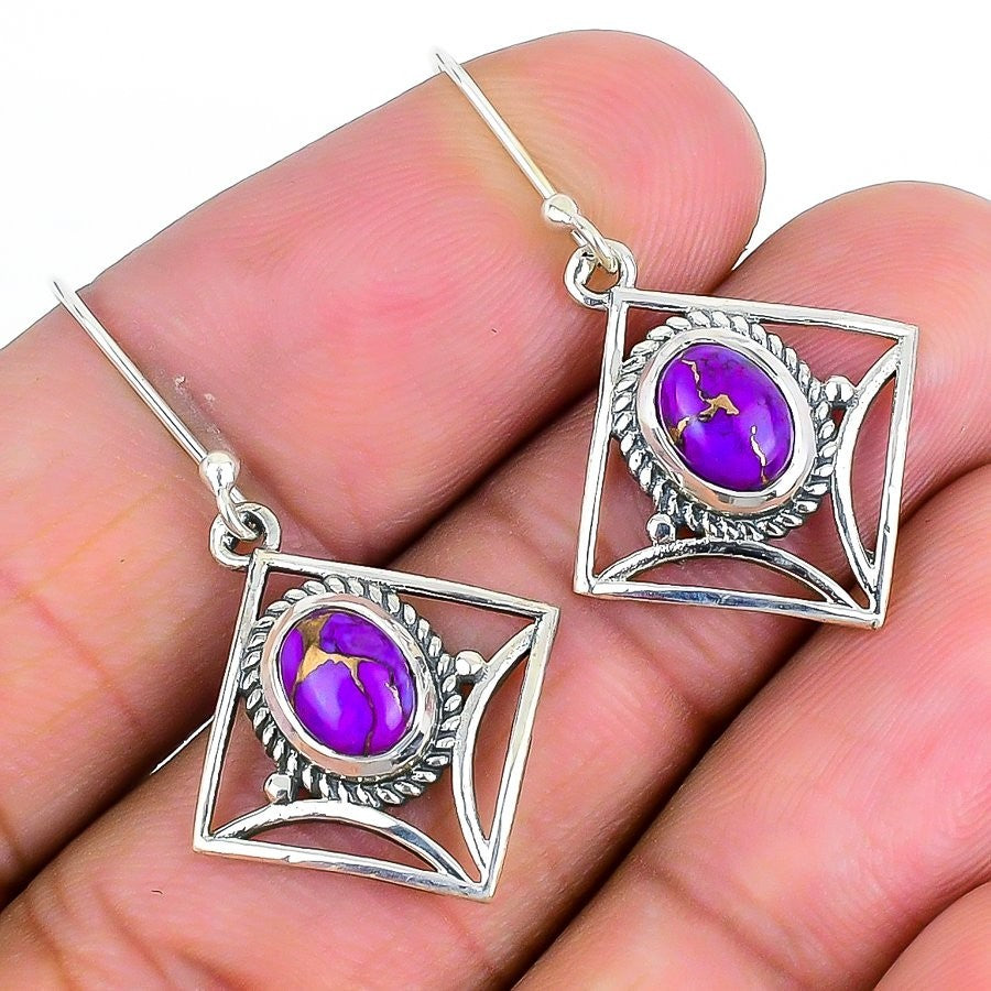 Natural Copper Purple Turquoise Solid Silver Mother Drop Hook Boho New Earrings