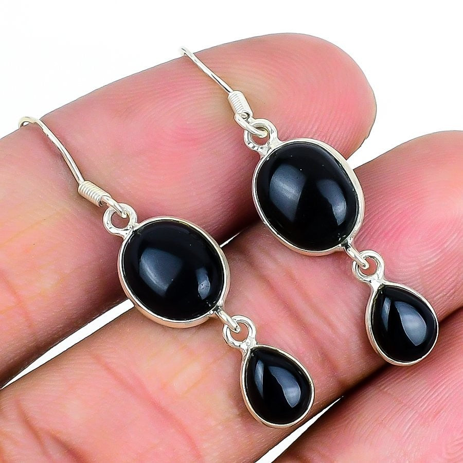 Root Chakra Black Onyx Stone Solid Sterling Silver Drop Wedding Elegant Earrings