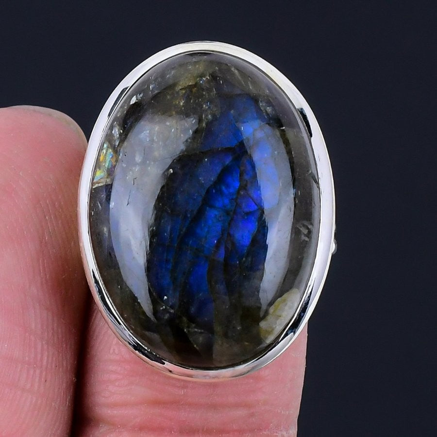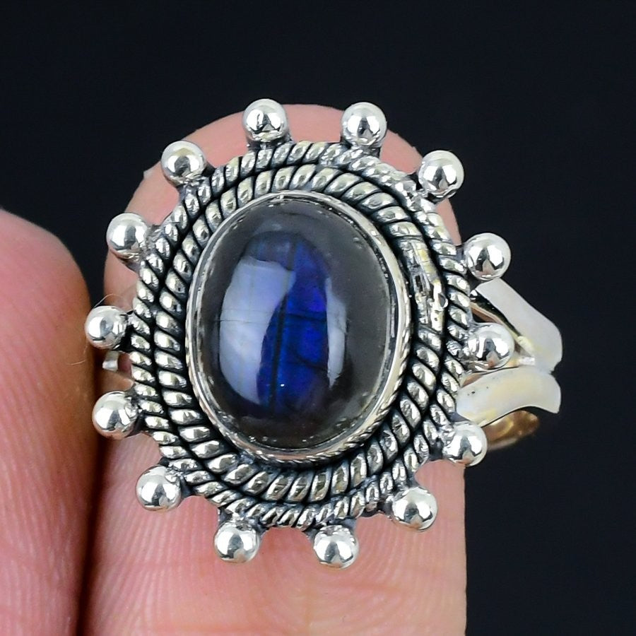 Labradorite Stone Solid Silver Ethnic Birthday Wedding Promise Band Sister Ring