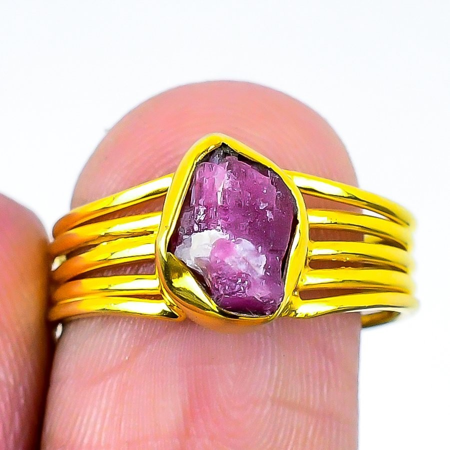 Pink Tourmaline Stone Statement Band Mother Promise Ring Jewelry 925 Silver US 8
