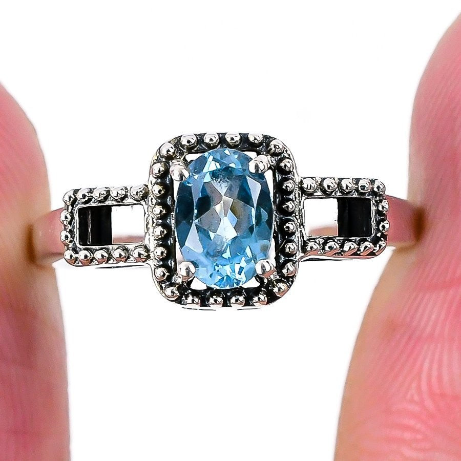 Aquamarine Stone Anniversary Mother New Statement Daughters Day Ring 925 Silver
