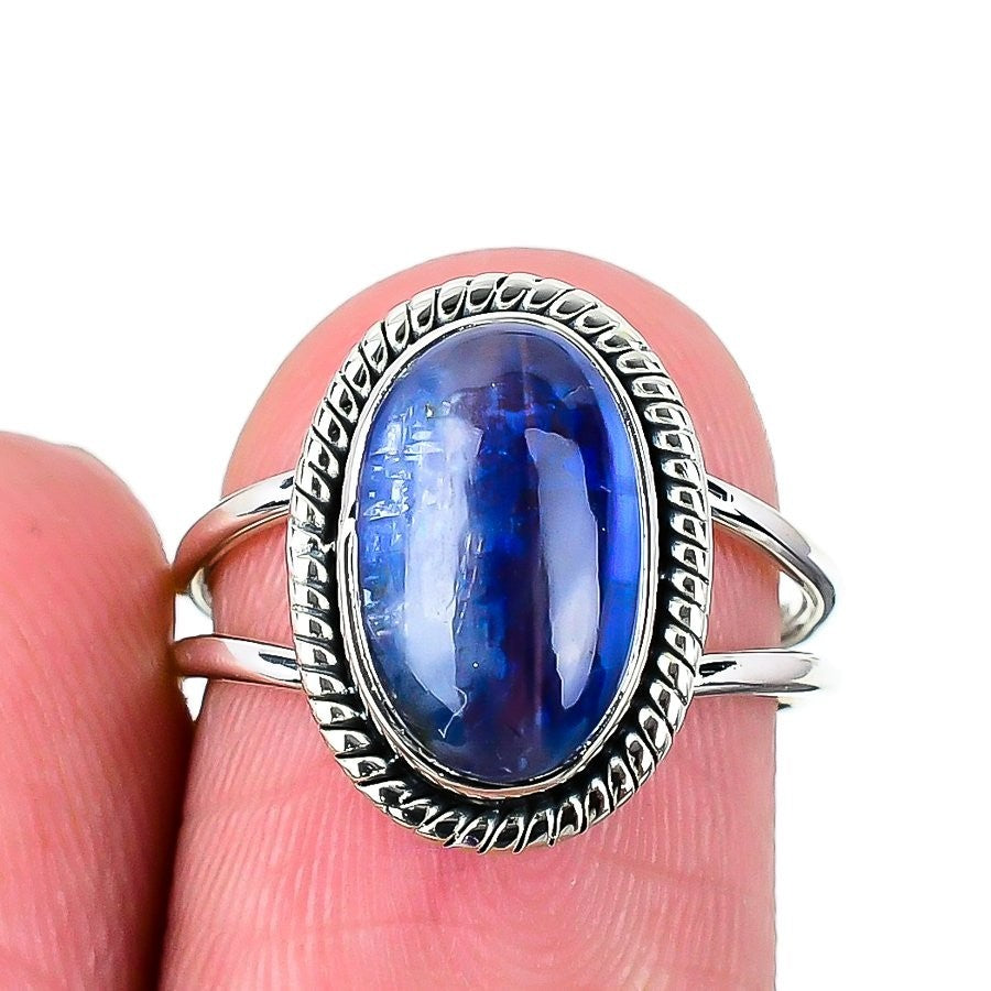 Natural Blue Kyanite Ethnic New Statement Ring Jewelry 925 Sterling Silver US 7