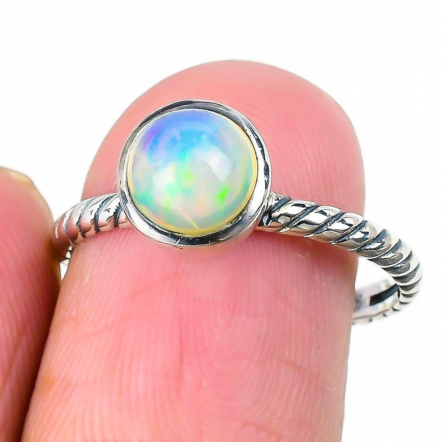 Natural Ethiopian Opal 925 Solid Silver Wife Cluster Handcrafted Ring Jewelry