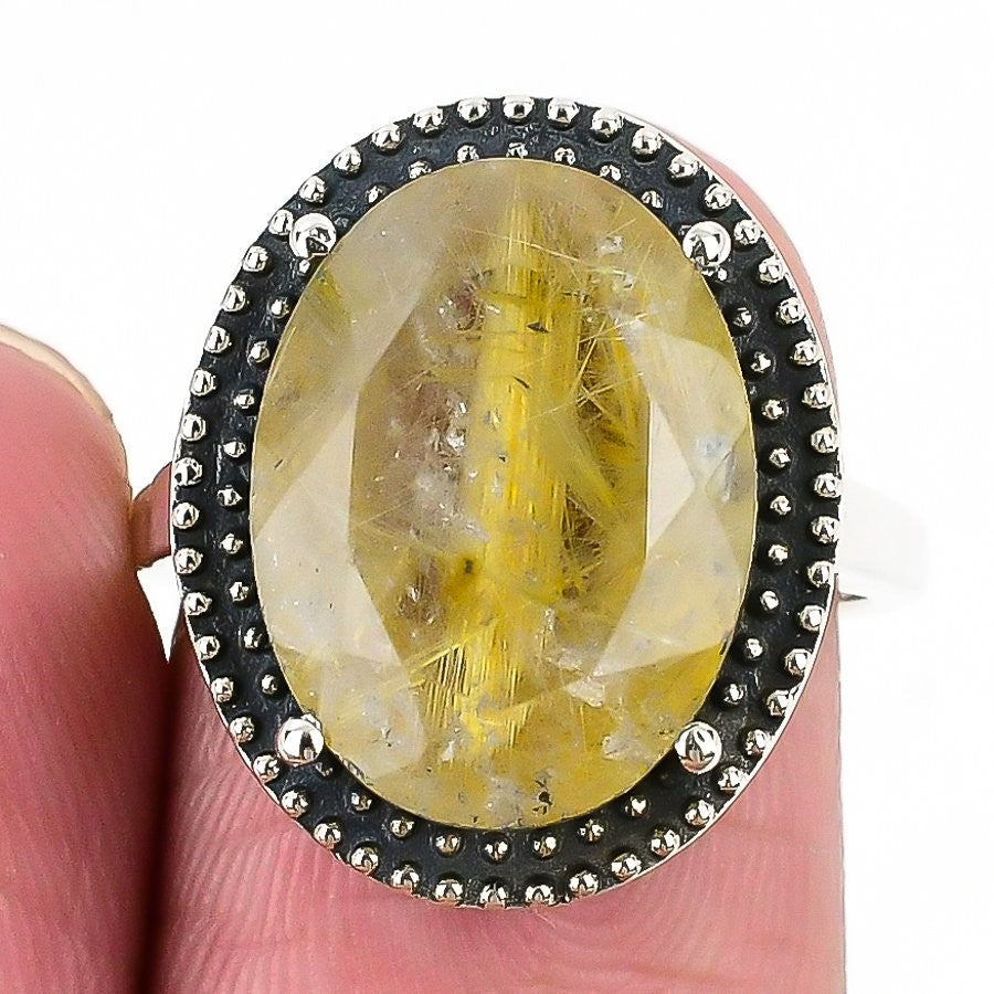 Golden Rutile Stone 925 Silver Handmade Statement Artisan Ring Jewelry Size 6.5