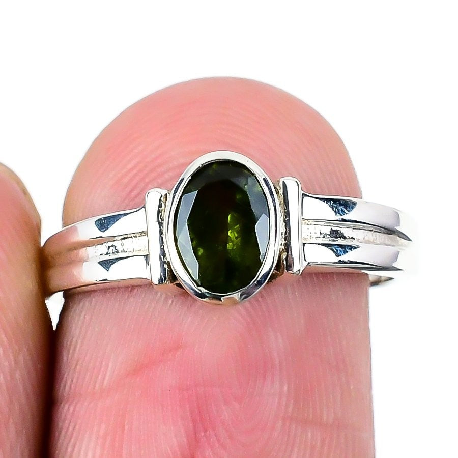 Natural Green Tourmaline Sterling Silver Birthday Statement Ring Jewelry Size 7