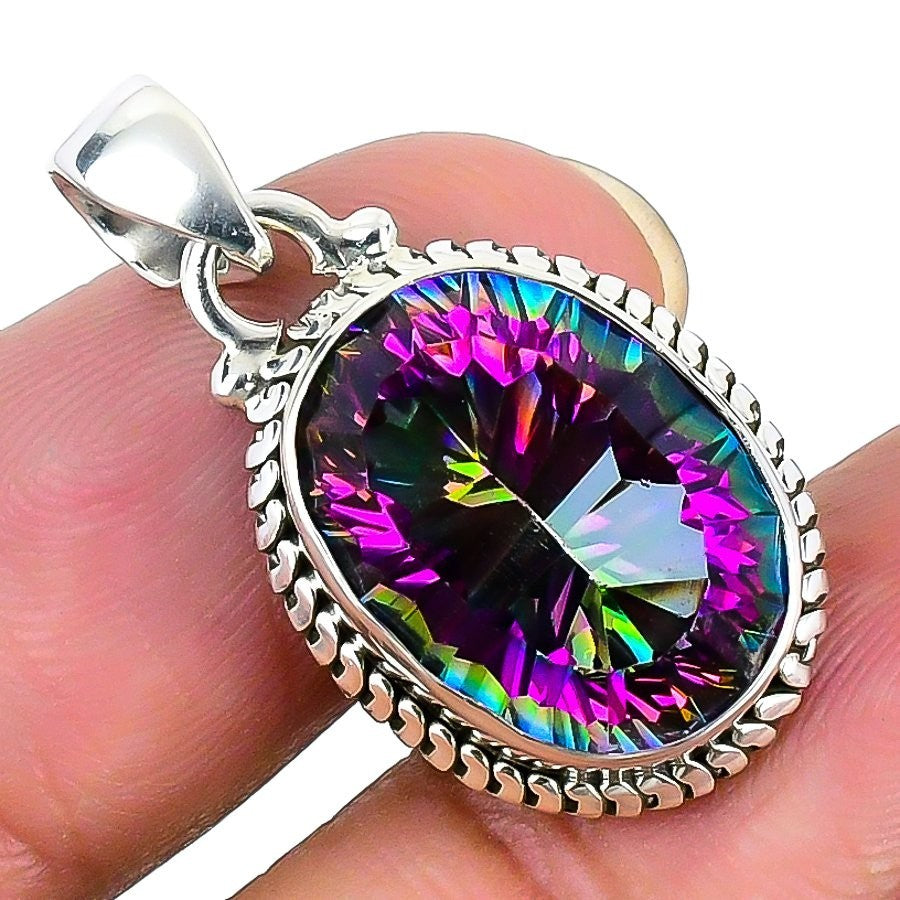 Natural Rainbow Mystic Topaz Solid Sterling Silver Birthday New Pendant Jewelry