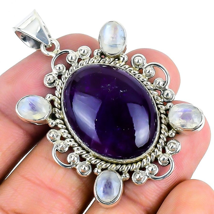 Crown Chakra Crystal Stone 925Ā SolidĀ Silver Anniversary Boho New Pendant Jewelry