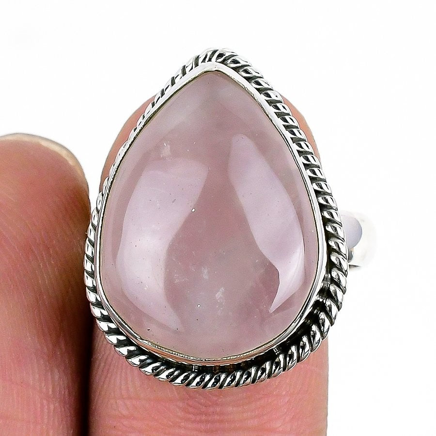 Rose Quartz Gemstone Unique Bezel Wife Statement Ring Size 8 925 Sterling Silver