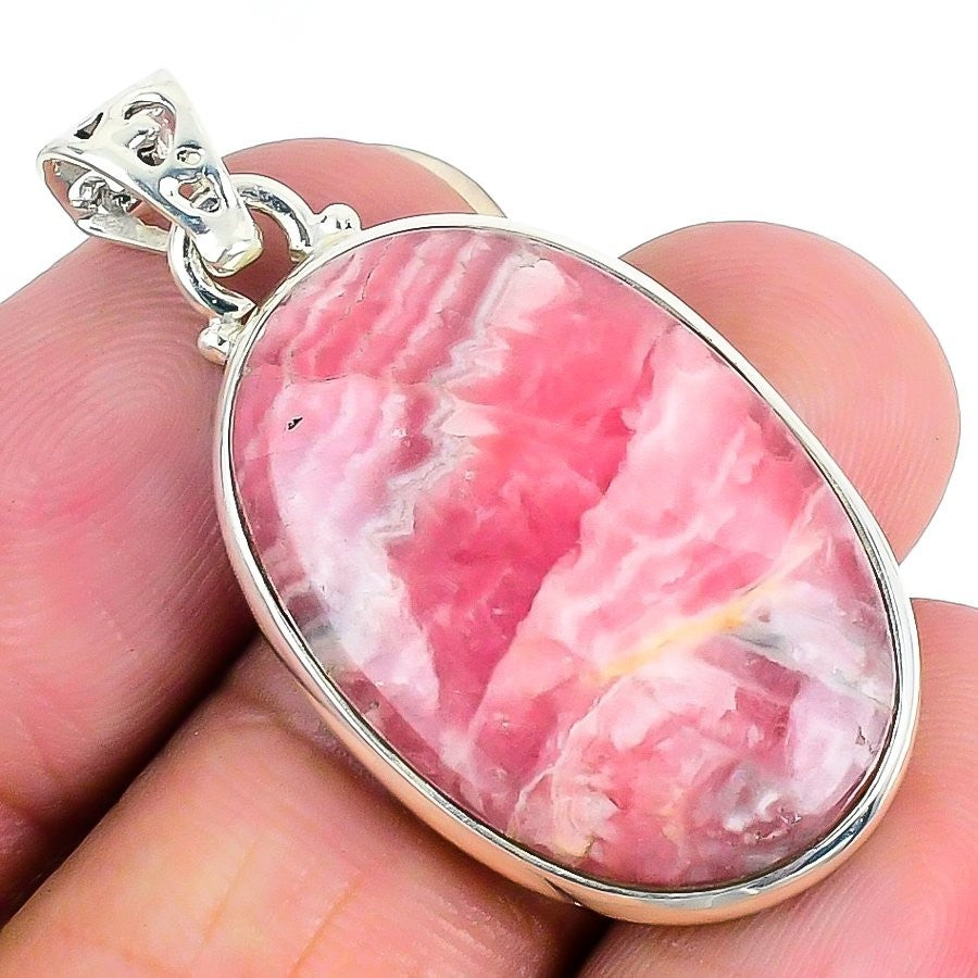 Daughters Day Sale Heart Chakra Rhodochrosite Gemstone Pendant Sterling Silver
