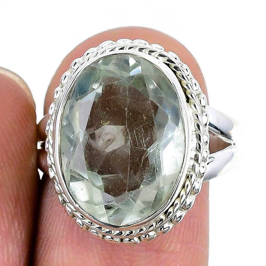 Natural Green Amethyst 925 Silver Sister Statement Bezel Boho Ring Jewelry US 8