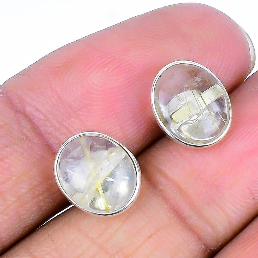 Golden Rutile Stone Engagement Stud Post Wedding Wife Earrings 925Ā SolidĀ Silver