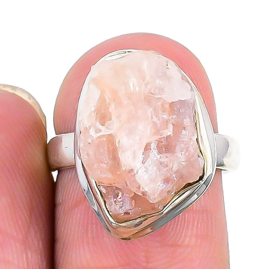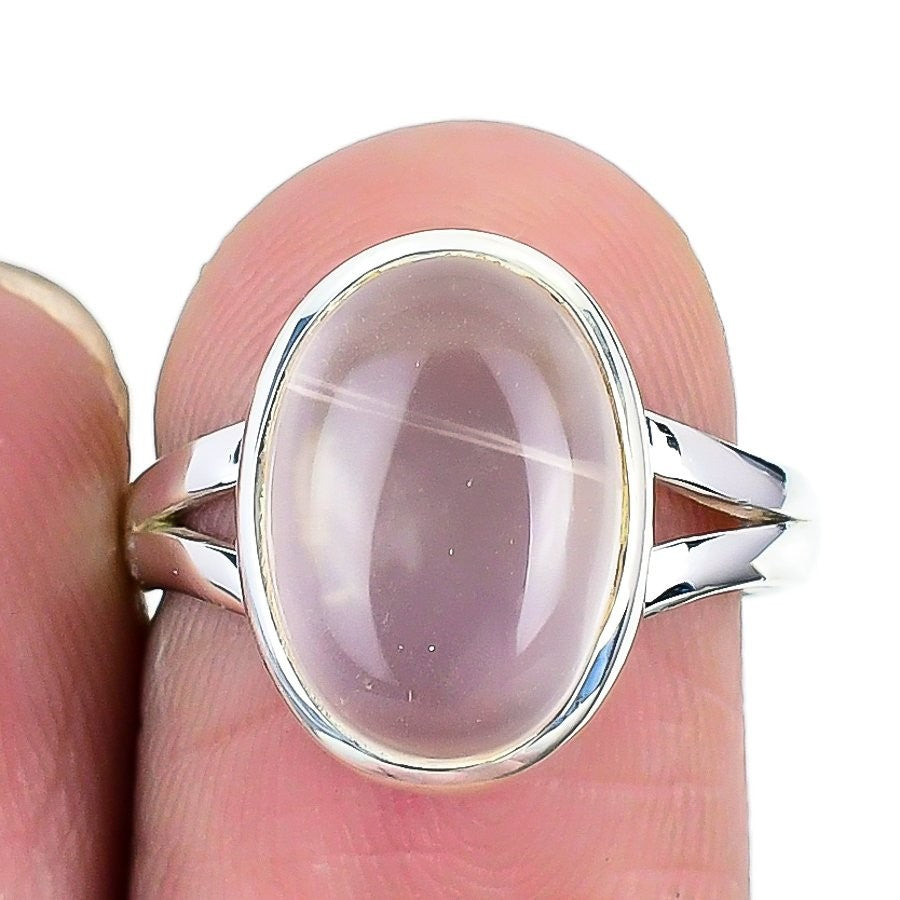 Rose Quartz Stone 925 Silver Statement Friendship Day Heart Chakra Ring US 7.5