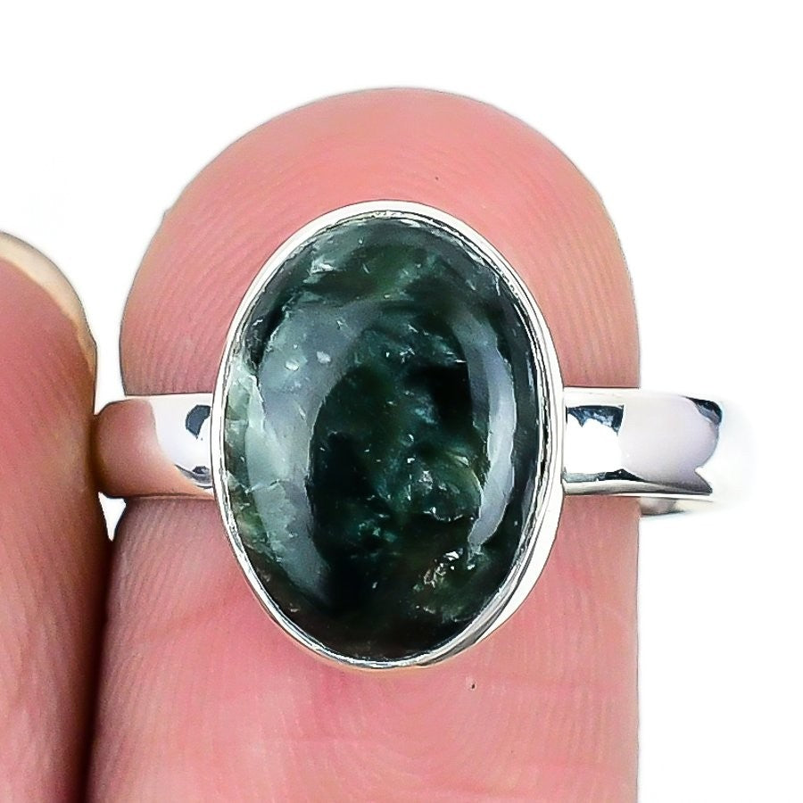 Seraphinite Stone Solid Sterling Silver Bezel Statement Daughter New Ring US 9