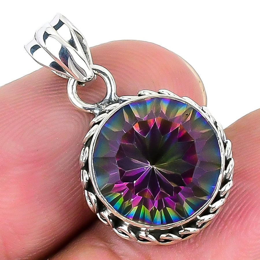 Daughters Day Sale Rainbow Mystic Topaz Stone Sister Bezel Pendant Solid Silver