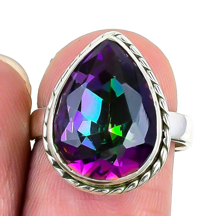 Sisters Day Deal Mystic Topaz Gemstone 925 Silver Statement Ring Jewelry Size 7