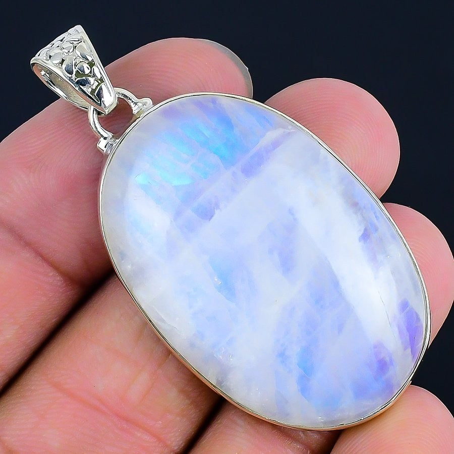 Natural Moonstone Sterling Silver Anniversary Bezel Birthday Engagement Pendant
