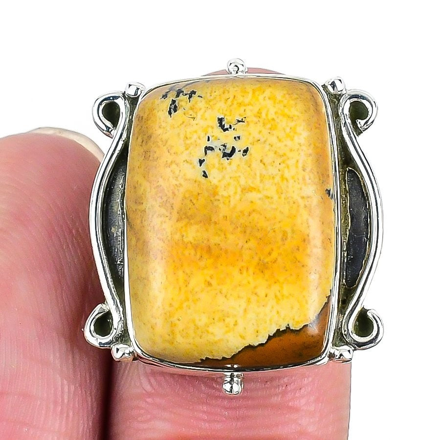 Natural Picture Jasper 925 Sterling Silver Statement Art Deco Sister Ring Size 7