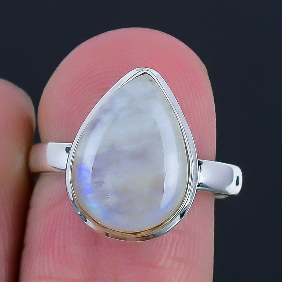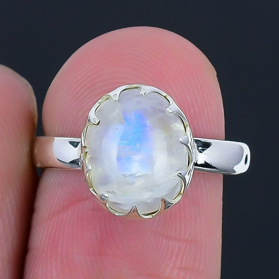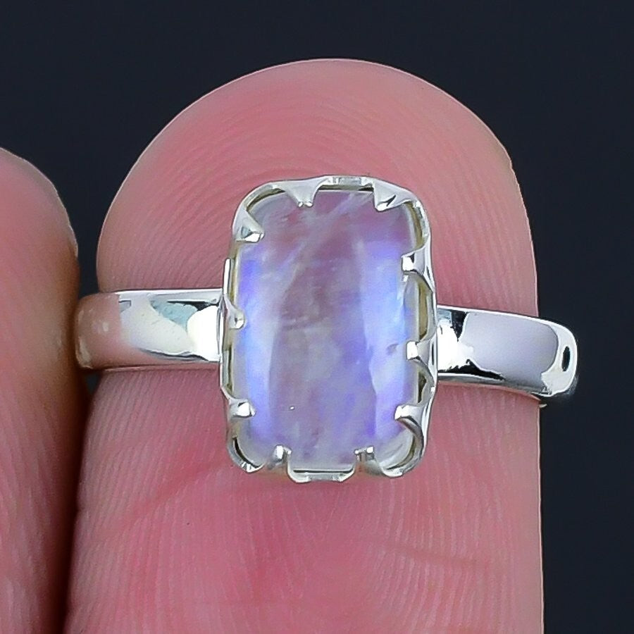 Rainbow Rainbow Moonstone Stone Solid Sterling Silver Cluster Wife Ring Jewelry