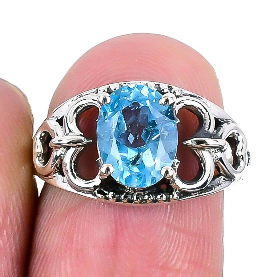 Swiss Blue Topaz Stone 925 Sterling Silver Sister Ethnic Cluster New Ring Size 8