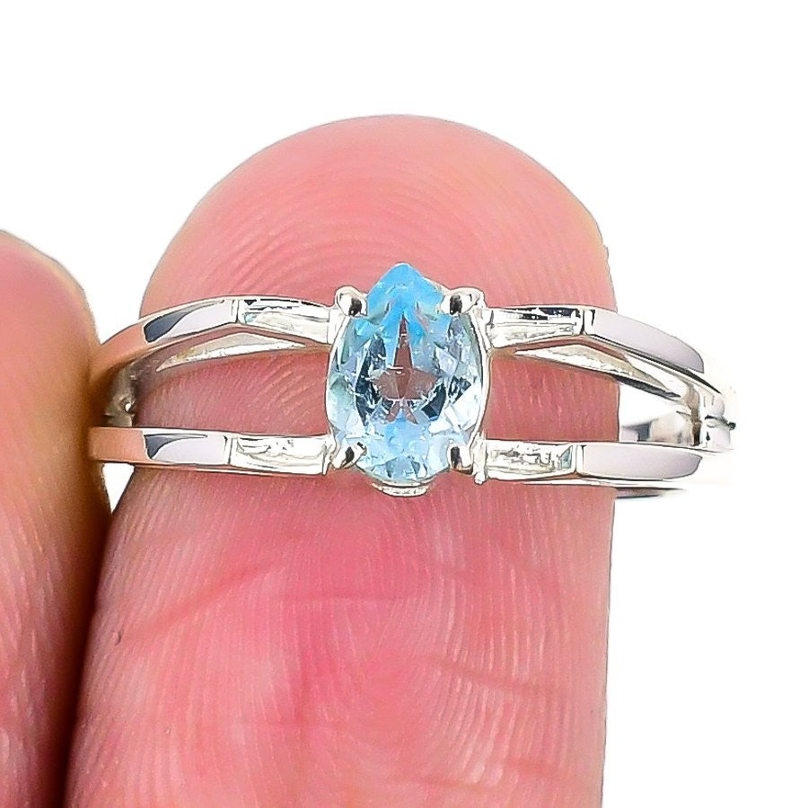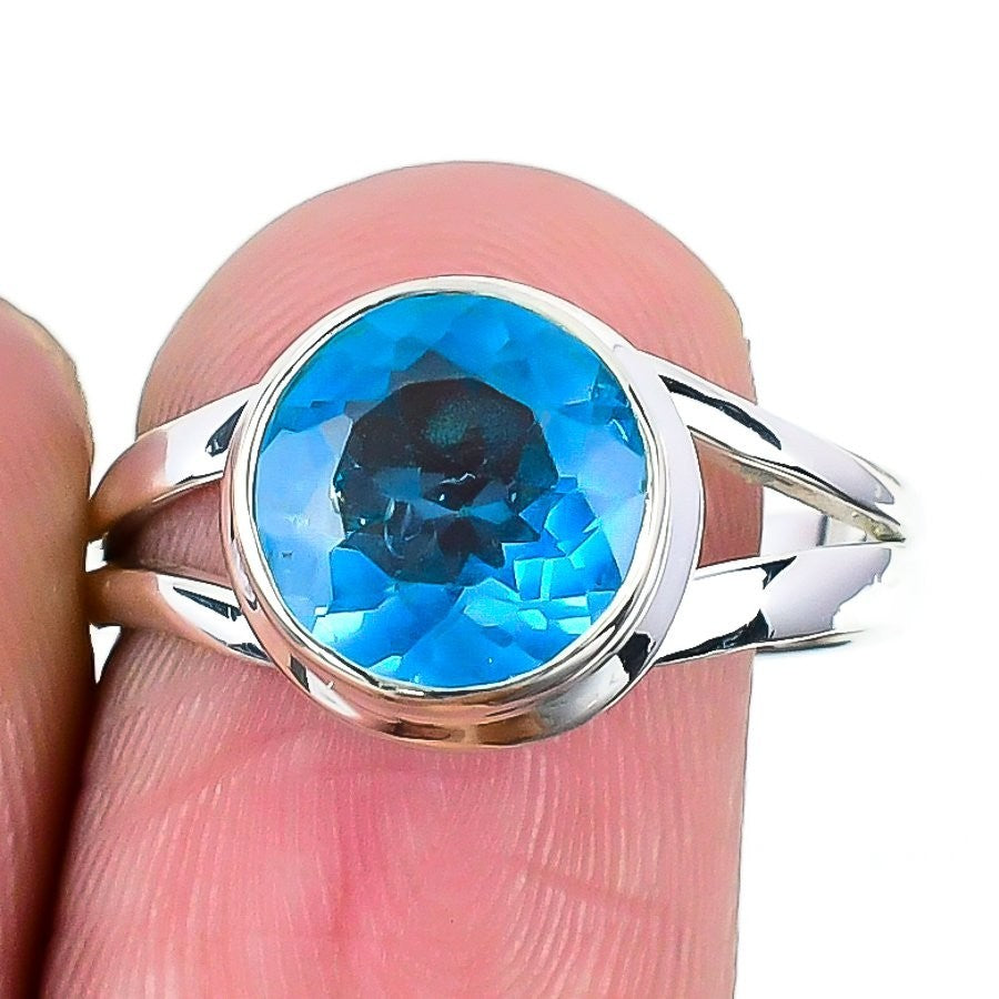 Swiss Blue Topaz Gemstone 925 Sterling Silver Artisan Cluster Sister Ring Size 6