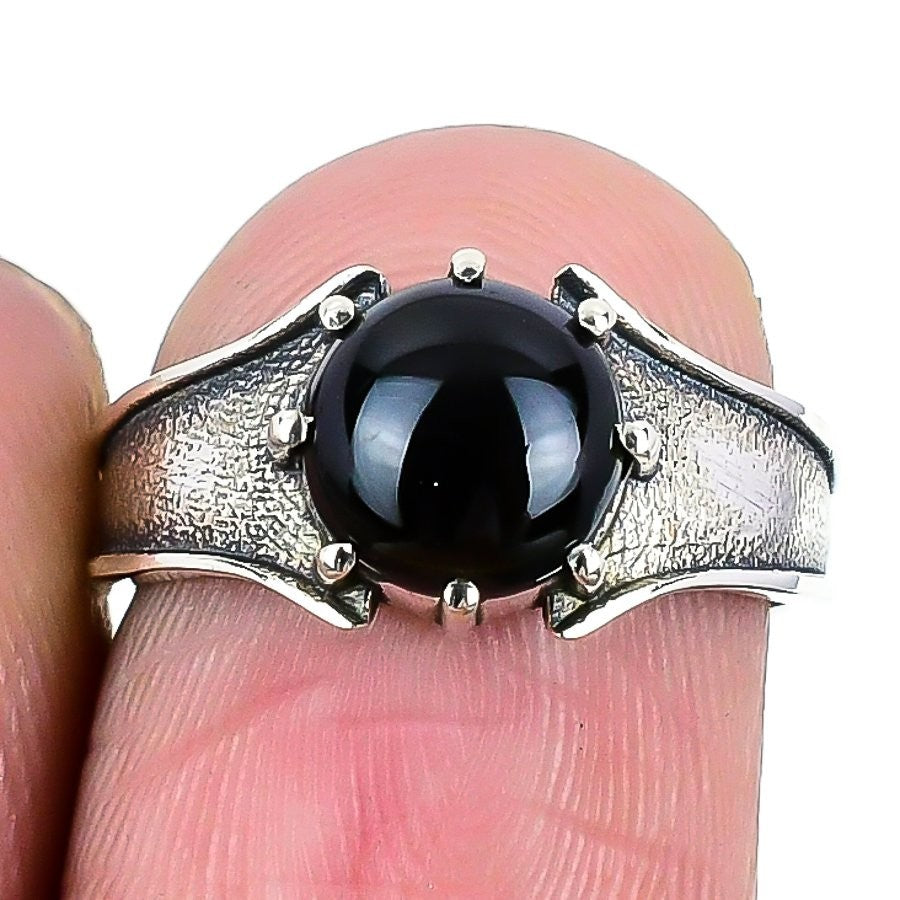 Natural Black Onyx Solid Silver Sister Cluster Handmade Birthday New Ring Size 6