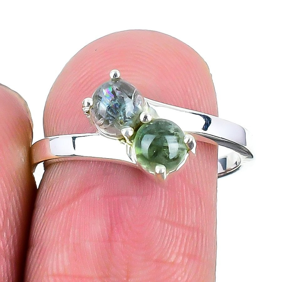 Tourmaline Stone Sterling Silver Mother Birthday Cluster Root Chakra Ring Size 7