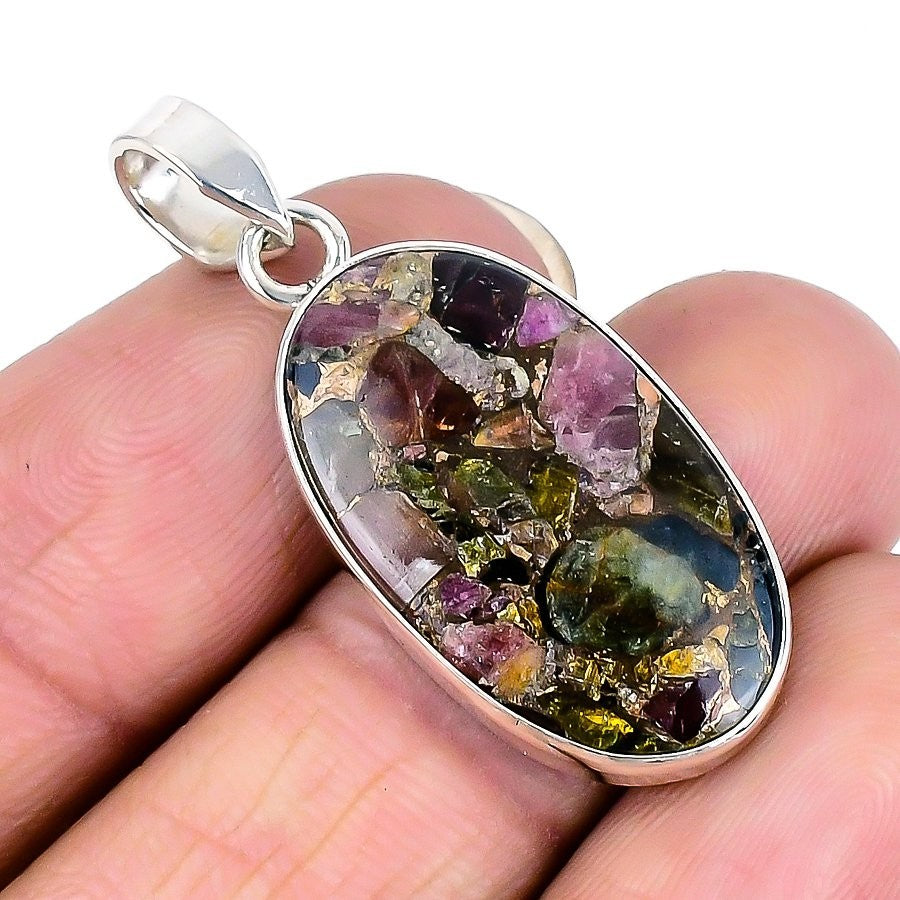 Sisters Day Sale Watermelon Tourmaline Stone Wedding New Pendant Sterling Silver
