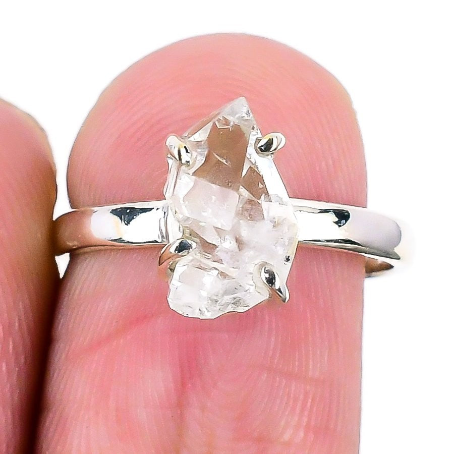 Natural Herkimer Daimond 925 Sterling Silver Wife Cluster Birthday Ring Size 7