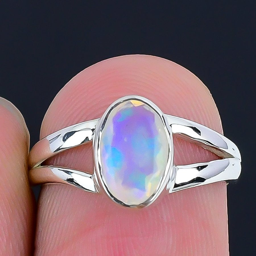 Natural Ethiopian Opal Statement Anniversary Bezel Trendy Ring Size 6 925 Silver