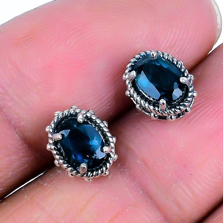 London Blue Topaz Stone Solid Silver Stud Post Daughter Gift Earrings Jewelry