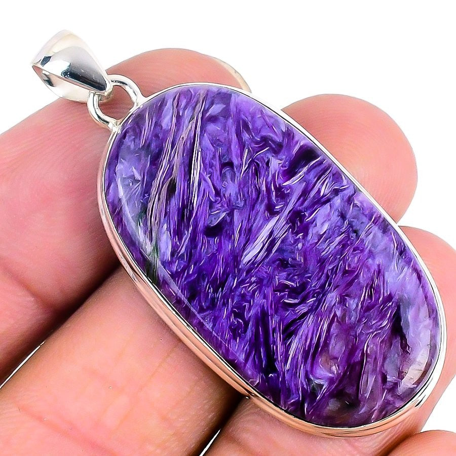 Russian Charoite Gemstone Bezel Daughter New Pendant Jewelry 925 Sterling Silver